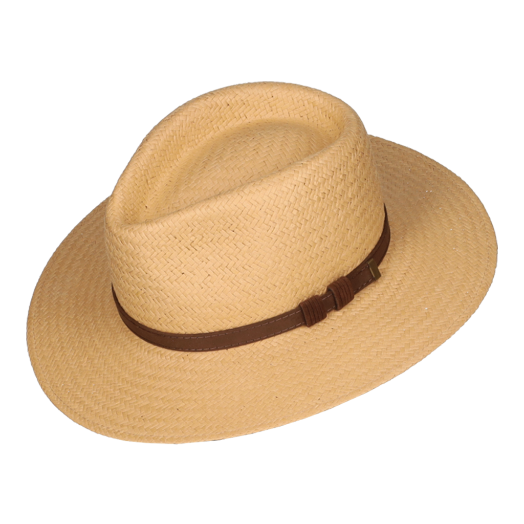 Sombrero australiano en color nude y con la cinta en cuero.