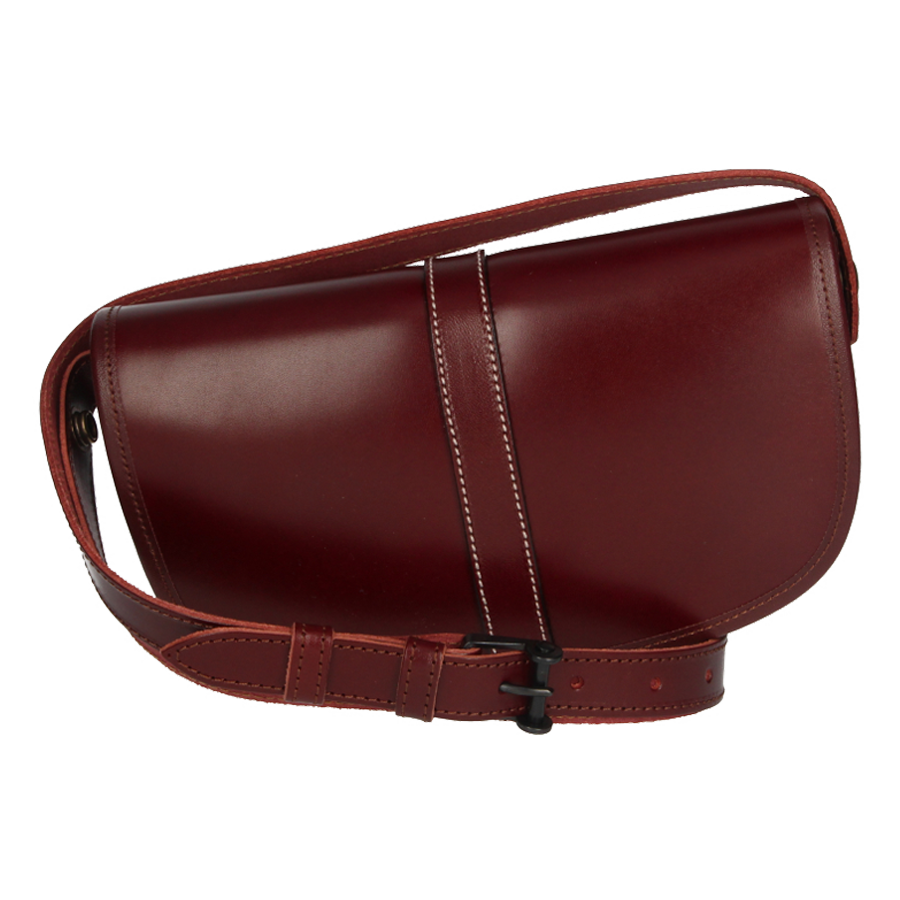 Sac banane style flamenco, cuir de vachette, couleur cerise, orné d'une bandoulière, dimensions : 21 x 13 x 5 cm, Valverde del Camino