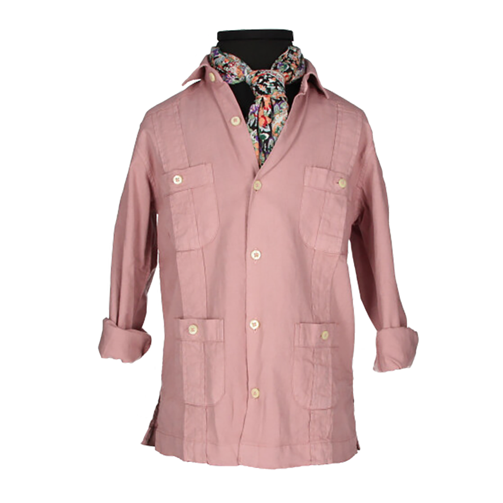 Chemise cubaine pour homme couleur rouille. Composition : 50 % lin et 50 % coton.
