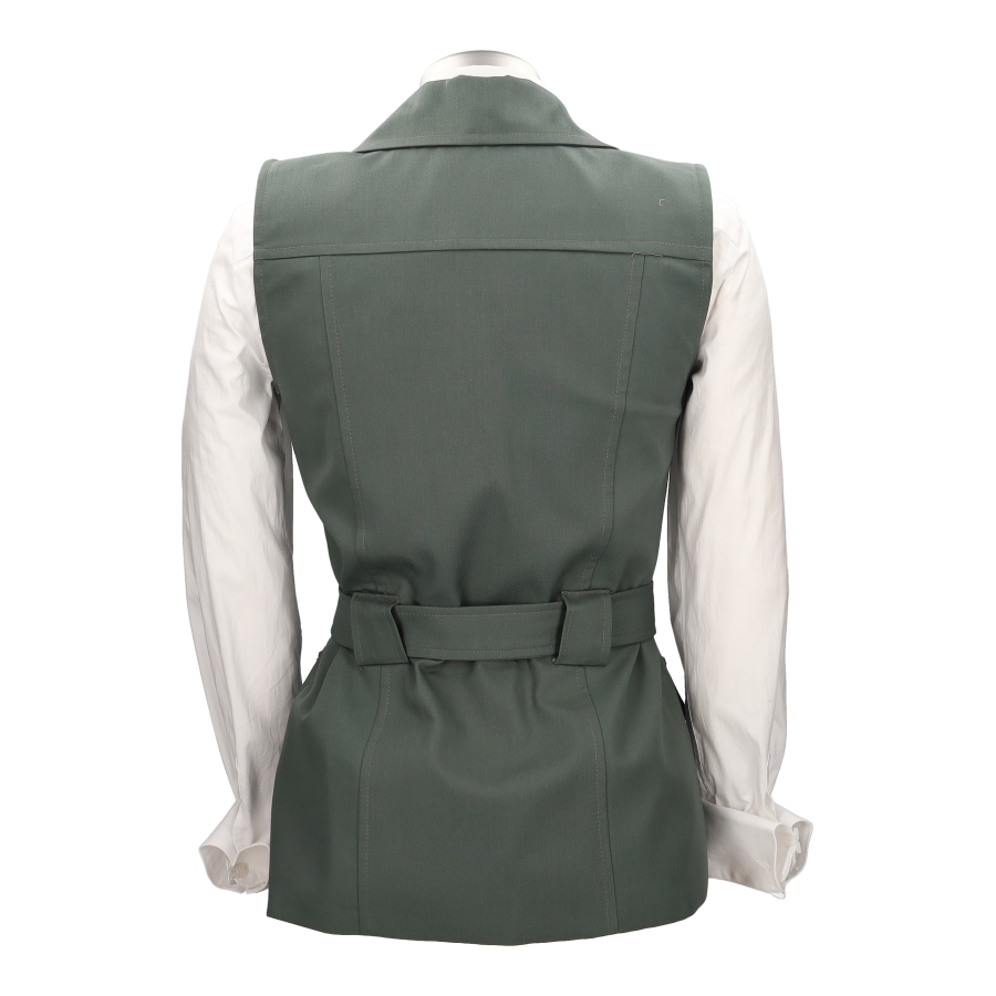 Le gilet Calima C'est la pièce idéale pour sublimer n'importe quelle tenue d'une touche sophistiquée et intemporelle. Confectionnée dans une élégante teinte vert sauge, elle se distingue par sa coupe structurée qui flatte la silhouette et lui confère une allure raffinée.