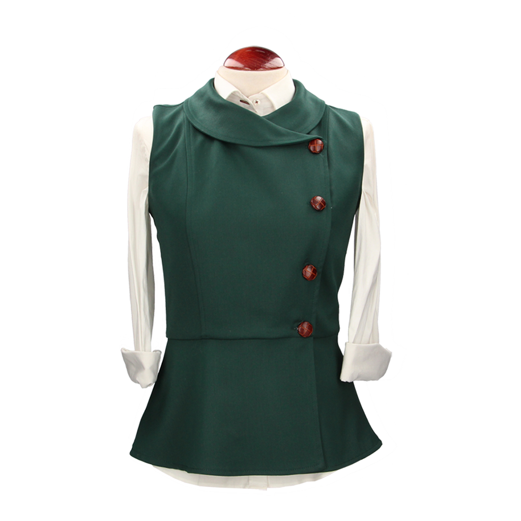 Gilet pour femme, modèle Levante de Claudia Baelo, vert. Fermeture boutonnée.