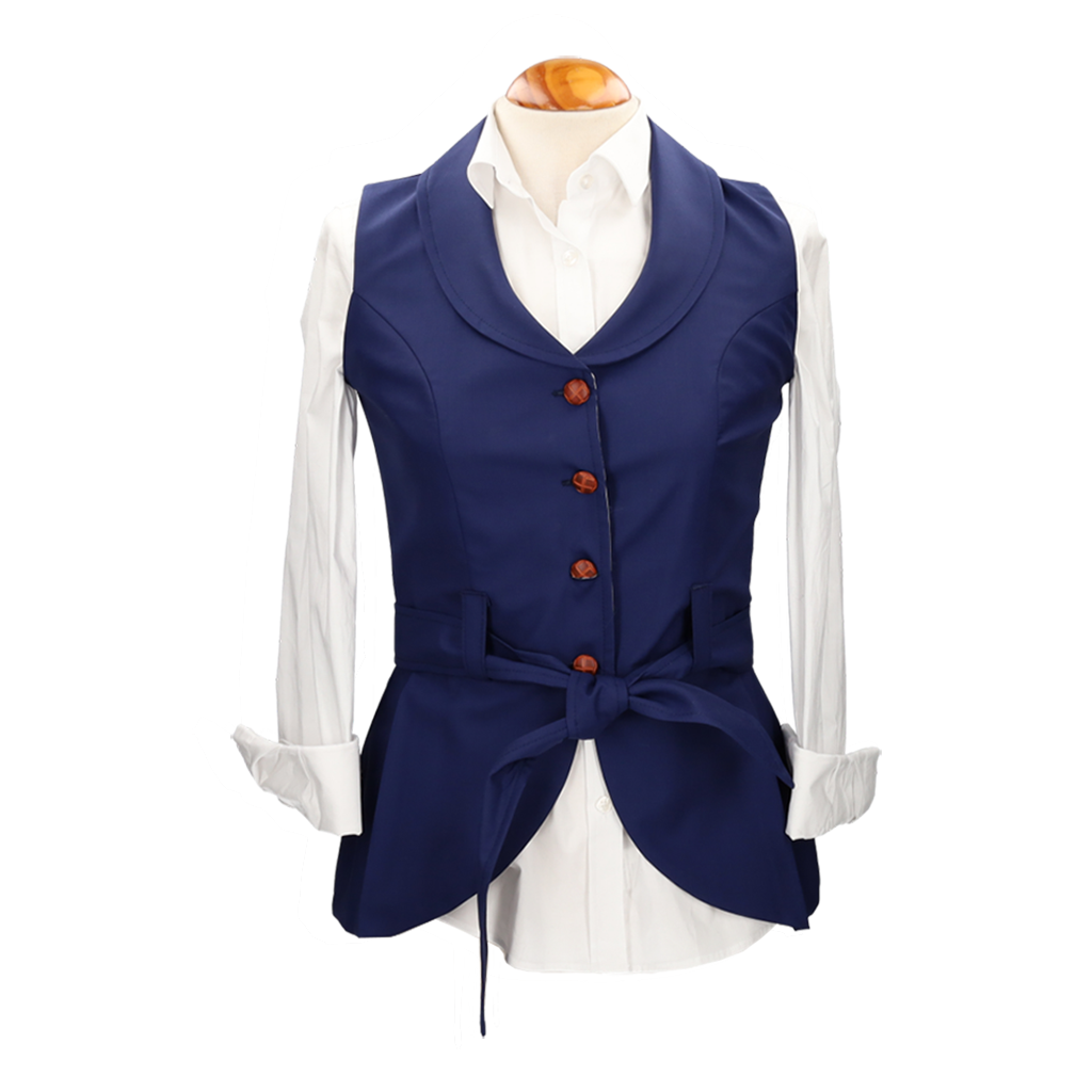 Gilet pour femme, de Claudia Baelo, modèle Pandora, bleu. Fermeture boutonnée.