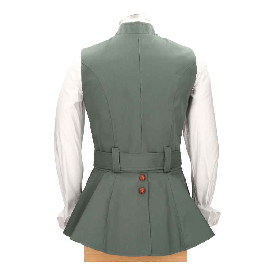 Confeccionado en un tejido verde de alta calidad, ofrece resistencia y durabilidad, manteniendo una sensación ligera y confortable durante toda la jornada. Su diseño sin mangas permite libertad total de movimiento en los brazos, mientras que el corte entallado se adapta a la figura sin apretar, realzando tu silueta sobre camisa o blusa.