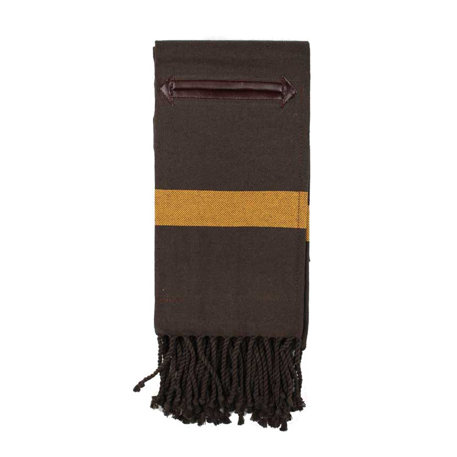 Couverture repose-pieds en toile avec poche, marron et moutarde.