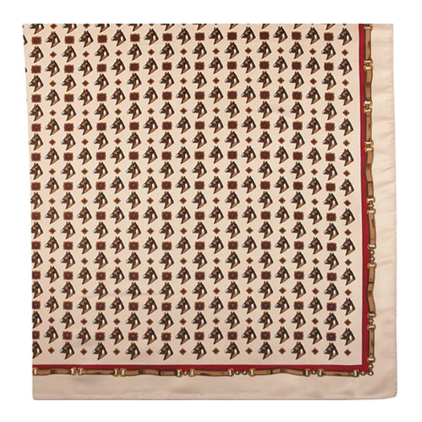 Écharpe en polyester, beige avec imprimé cheval, taille 90 x 90