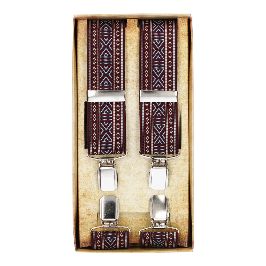 Bretelles de robe ethnique bordeaux avec une ligne bleu clair. 35 mm