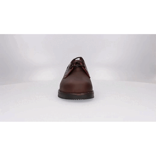 Chaussure à lacets en cuir huilé marron foncé, semelle en caoutchouc.