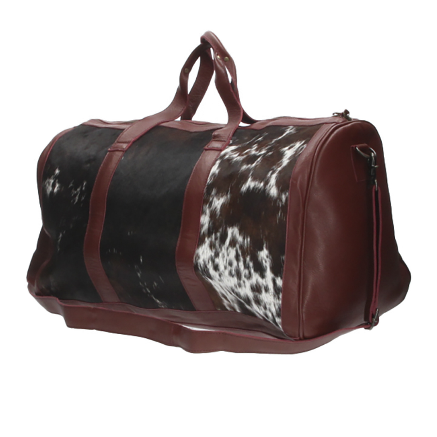 Bolso de viaje cuero combinado con sardo. Bolsa de gran capacidad, hecho en piel, Dimensiones: 50cm de ancho, 30cm de profundidad, 28cm de alto.