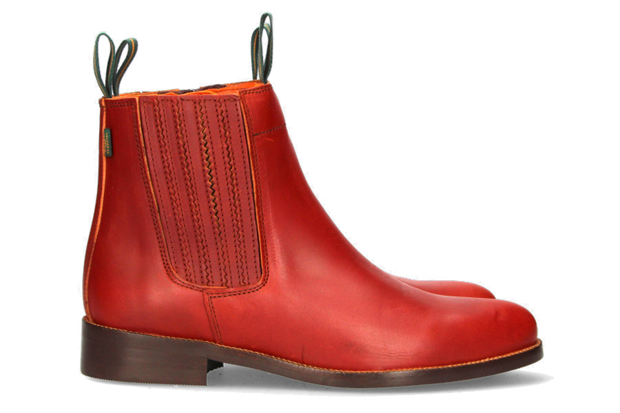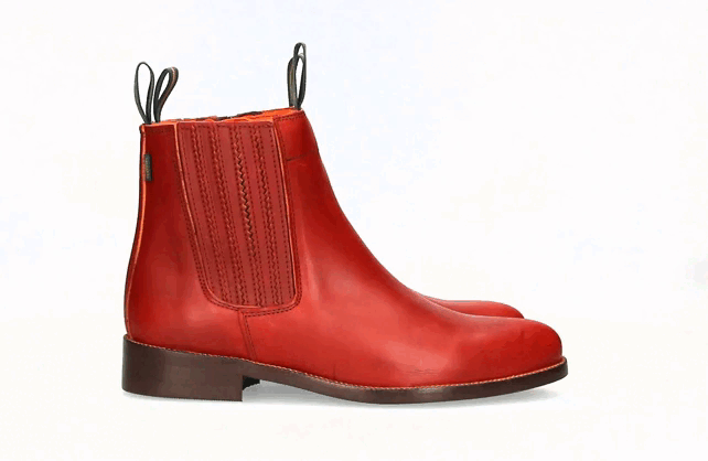 Bota corta modeada de Valverde del Camino con fuelle plisado, piel de ternera, color coñac. Suela de cuero.