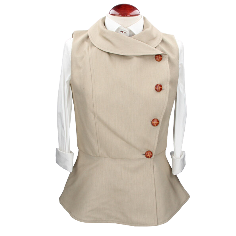 Chaleco de mujer, de la marca Claudia Baelo, modelo Levante, en color beige. Cierre con botones.
