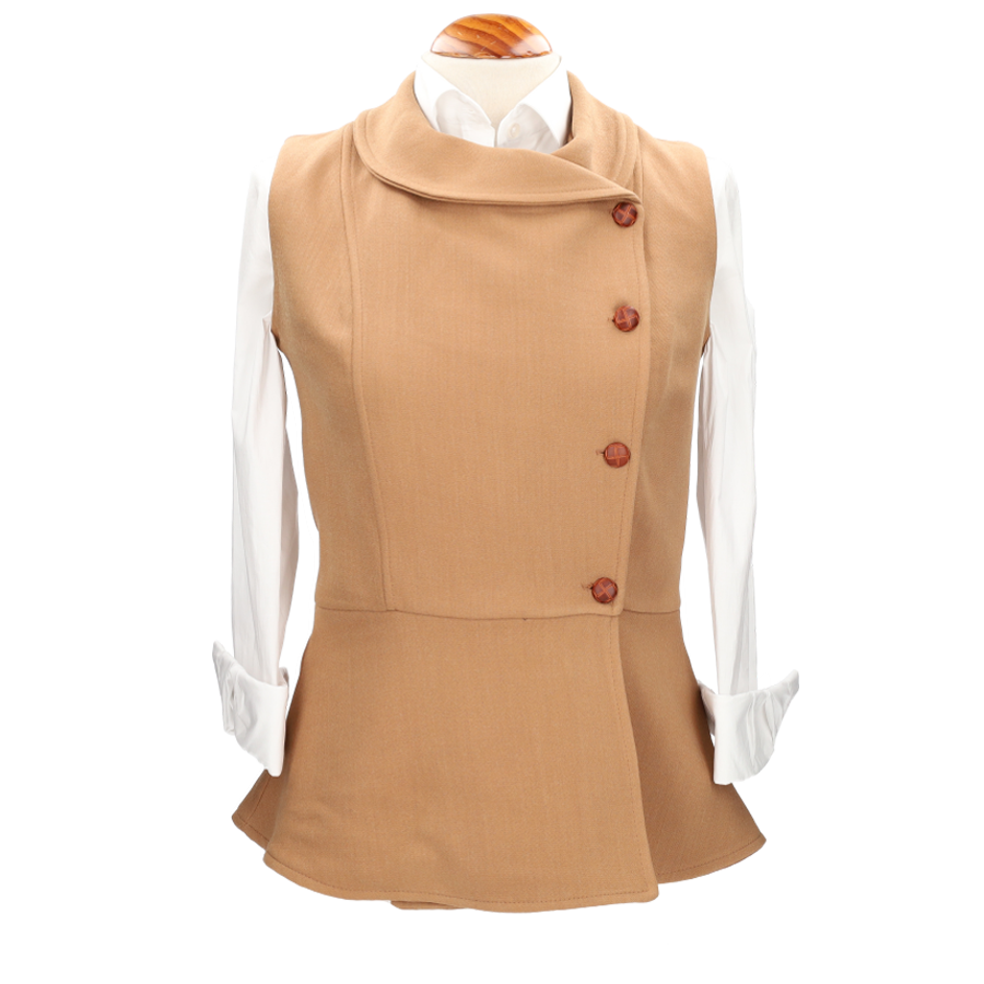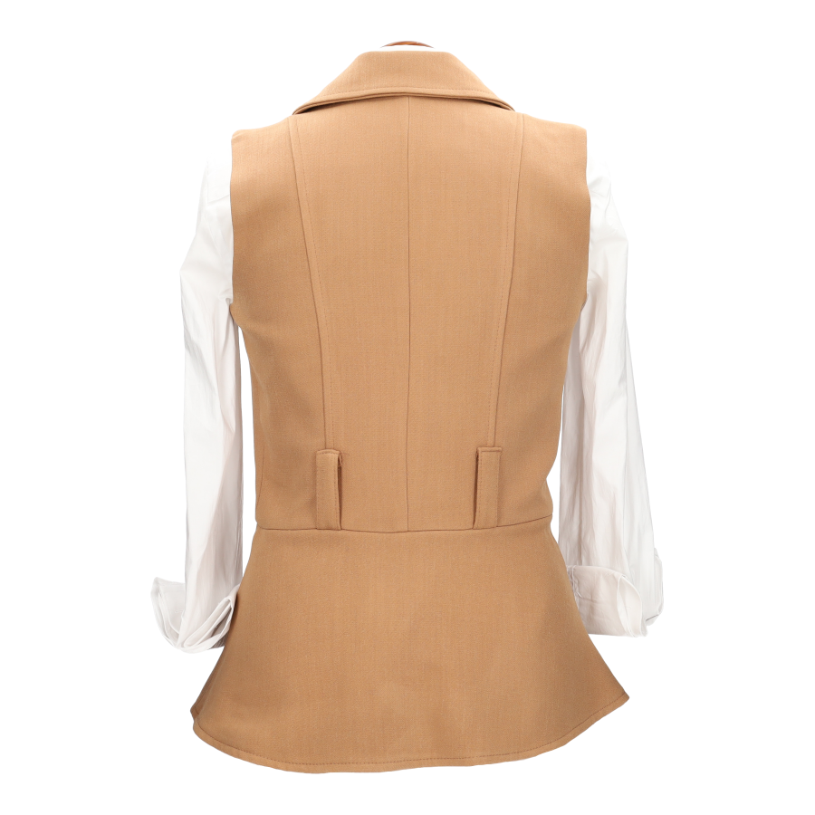 Chaleco de mujer, de la marca Claudia Baelo, modelo Levante, en color tostado. Cierre con botones.