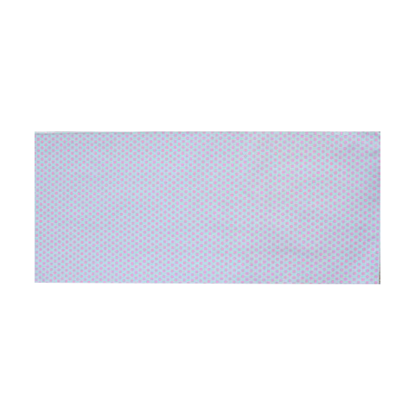 Fajin 100% satín, color celeste con lunares rosa, tamaño 150cm x 27 cm