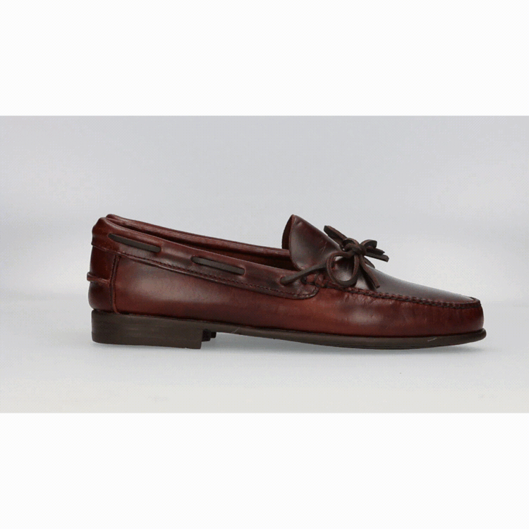 Mocasín de hombre de Roberto Garrudo, con lazo en color moka. Suela de goma.