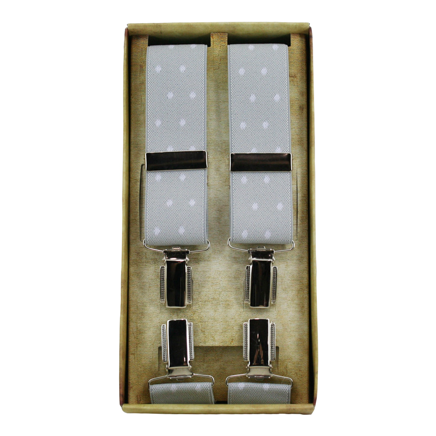 Tirante de vestir, gris con lunares blancos.